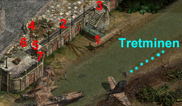 und die Tretminen deaktiviert, die am Flußufer vergraben sind.