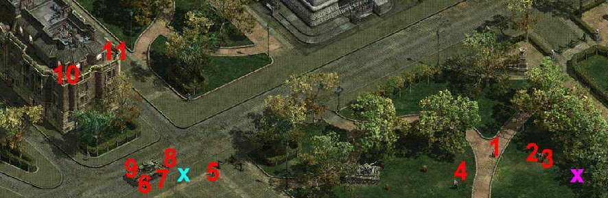 Eine gute Schußposition ist bei X.