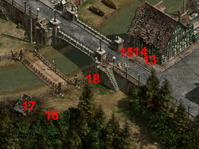 Falls noch nicht getan, sollte der Pionier den Zaun an der Brücke aufschneiden, so daß Smith